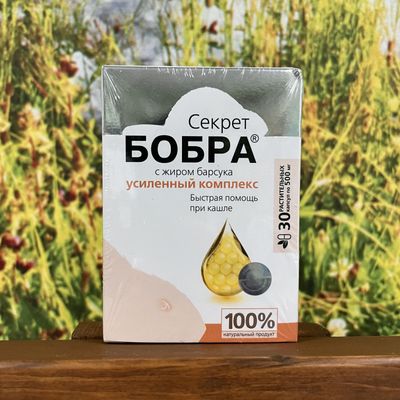 «Секрет бобра» с жиром барсука «Сашера-Мед» – нативная формула природного комплекса усиленного действия в растительных капсулах. Натуральный нативный комплекс из бобровой струи, жира барсука, активизированный пергой пчелиной, обладает усиленным противовоспалительным, противоинфекционным, болеутоляющим и восстановительным действием.
