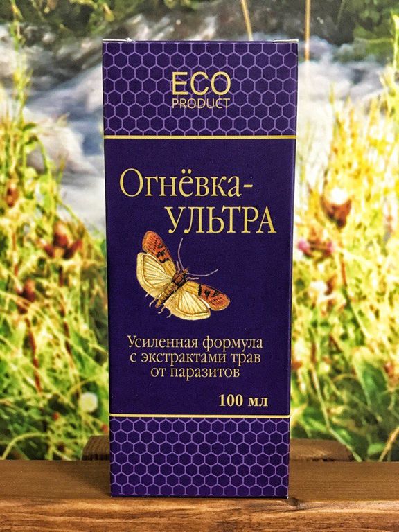 Оказывает мощное антипаразитное и кровоочистительное действие. Уничтожает более 100 видов паразитов, также их яйца, цисты, споры и личинки. Комплексный состав из лекарственных растений эффективно взаимодействует с остальными натуральными компонентами в составе Огнёвки от паразитов, очищая от паразитов, бактерий, вирусов и грибков кровь, лимфу, дыхательную систему, печень, почки, мочеполовую, пищеварительную систему.