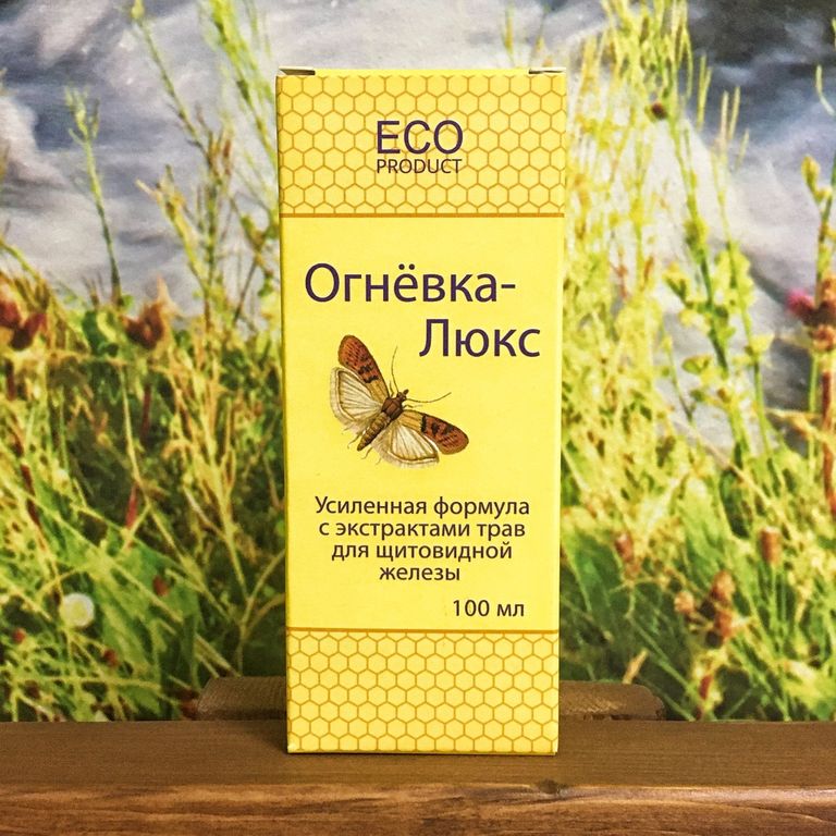 Концентрат Огневка-Люкс представляет из себя сбалансированный комплекс натуральных продуктов пчеловодства и экстрактов трав, рекомендованный для применения как сопутствующее оздоровительное и восстановительное средство при заболеваниях эндокринной системы. В основу продукта положены народные рецепты использования целительных свойств деревьев и трав, соединенные и усиленные замечательными свойствами продуктов пчеловодства – огневки и прополиса. Применение Огневки-Люкс является эффективным вспомогательным способом оздоровления при заболеваниях щитовидной железы и нарушении ее функций.