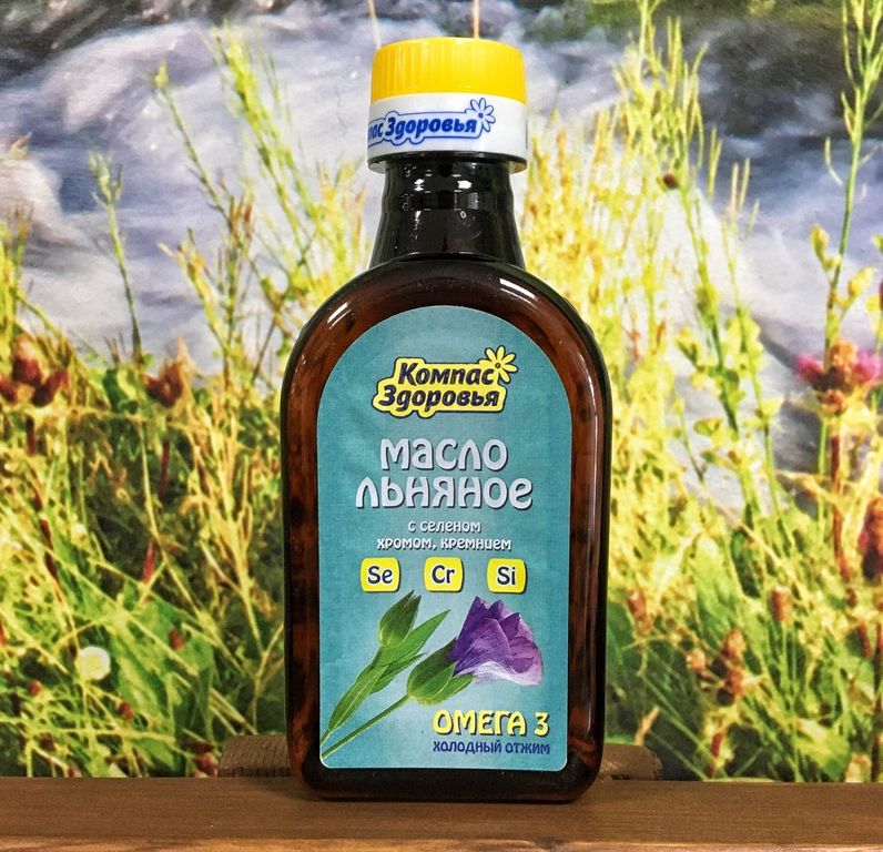 Льняное масло «КОМПАС ЗДОРОВЬЯ» получено методом холодного отжима из семян масличного льна, выращенного в суровом сибирском климате. Ему нет равных по содержанию Омега 3 (до 57%). Ведь, чем больше перепад температур зима/лето, тем выше содержание Омега 3 в семенах льна. Льняное масло – традиционный продукт питания с большой оздоравливающей силой. При ежедневном употреблении оно предотвращает сердечно-сосудистые заболевания, сахарный диабет, аллергию, запоры и др.