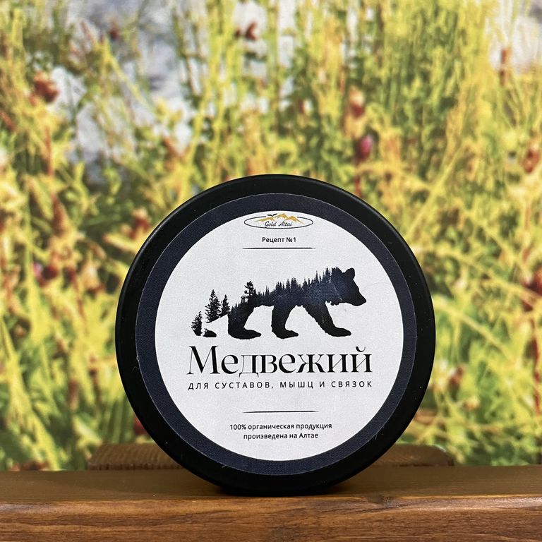 Состав: медвежий жир, жир барсучий, кедровое масло, льняное масло, живица пихтовая, живица кедровая, подмор, прополис, воск пчелиный, аконит корень, омик корень,живокост корень, сабельник корень, нутряной (свиной) жир.