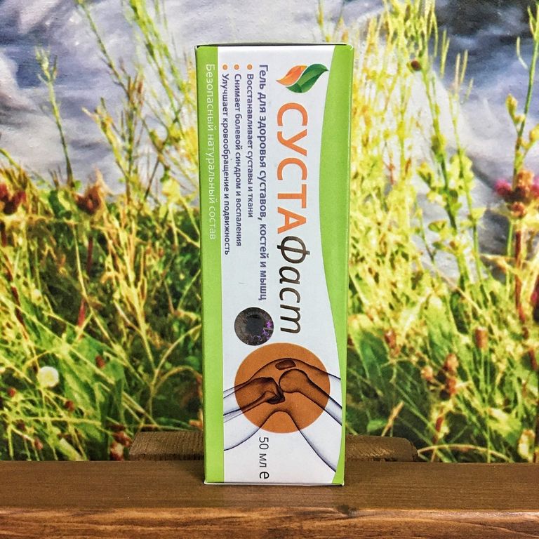 Сустафаст «Сашера-Мед» – натуральный мицеллярный гель на основе нативного комплекса микросфер масел, сока и концентратов растительных клеточных структур и вытяжек природных компонентов, направленный на симптомы дистрофических изменений суставного хряща, сопутствующие нарушения прилегающих соединительных тканей, кровеносных сосудов и эпидермального слоя кожи. Мицеллярный гель содержит сбалансированную амфифильную формулу активных компонентов, обладающую проникающей активностью, направленным действием на функции и состояние мышечных, коллагеновых волокон суставного хряща, клеточные обменные процессы, нервные ткани, рекомендован к применению при: