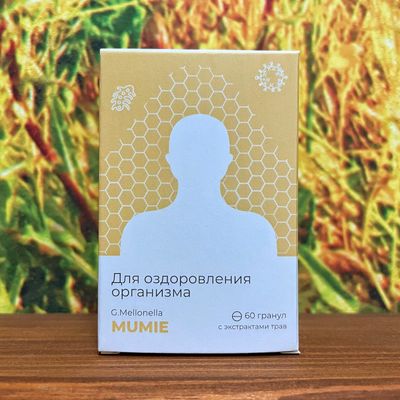 Гранулы «G. mellonella – MUMIE» - натуральный сбалансированный комплекс (полноценный курс), рекомендованный для укрепления иммунной системы и оздоровления всего организма.