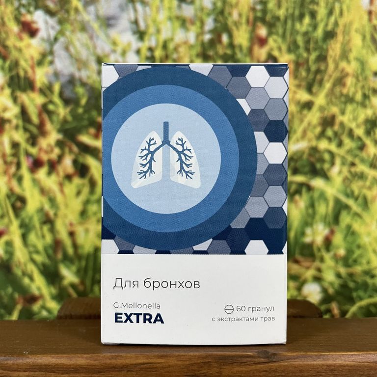 Гранулы «G. Mellonella – EXTRA» – натуральный сбалансированный комплекс (полноценный курс), рекомендованный как сопутствующее оздоровительное и восстановительное средство при заболеваниях дыхательных путей – бронхите, трахеите, ларингите, пневмонии и других.