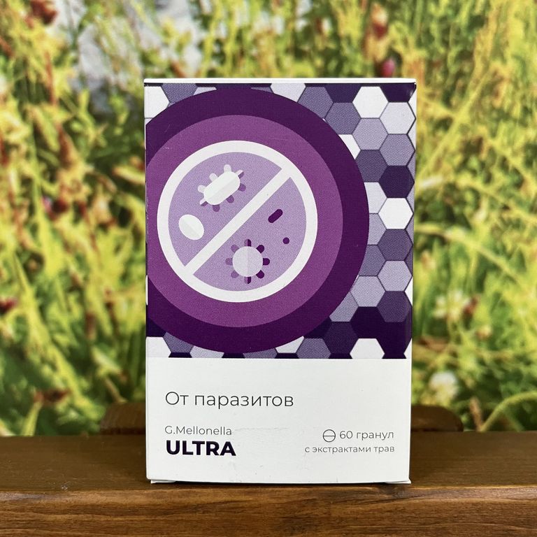 Гранулы «G. Mellonella – ULTRA» - эффективное вспомогательное средство, оказывающее сильное антипаразитарное и кровоочистительное действие. Биологически активные вещества продуктов пчеловодства и растительных компонентов помогают избавить кровь, кишечник, печень и весь организм от паразитов и их личинок, способствуют очищению (активно выводят шлаки, канцерогены, токсины, очищают кровь от продуктов распада опухолей и жизнедеятельности паразитов).