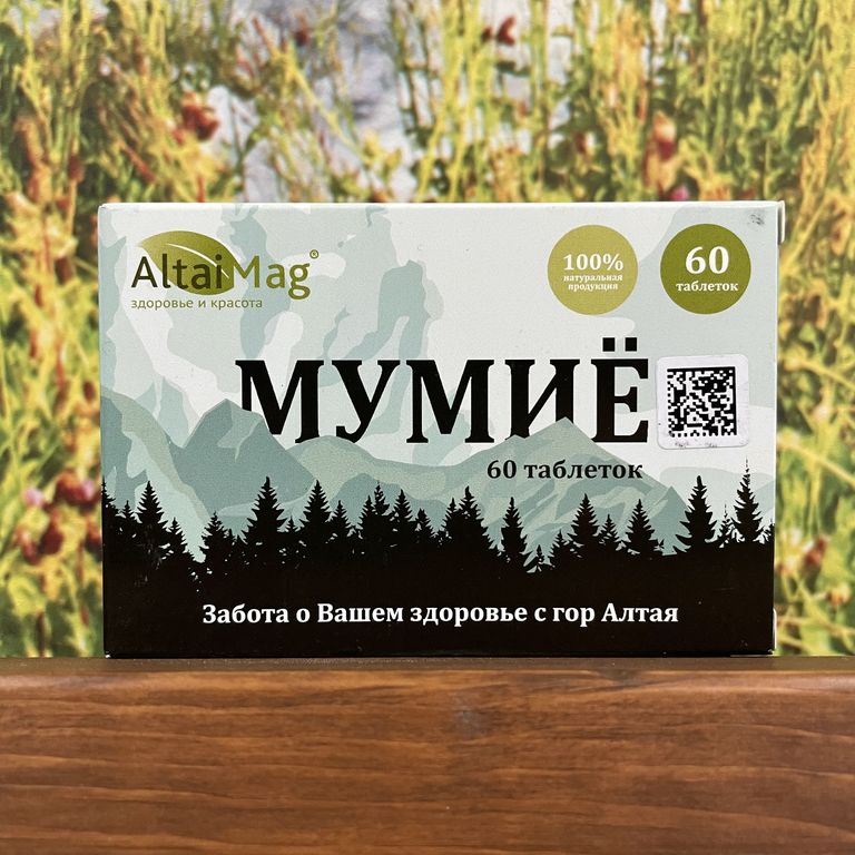 Мумие обладает противовоспалительными и восстанавливающими свойствами, оказывает общеукрепляющее действие на организм. Рекомендуется при сниженном иммунитете, для восстановления после тяжелых заболеваний; при артритах, костных и суставных болях, невралгиях; для ускорения заживления при травмах, переломах, ушибах, растяжениях. Источник гуминовых кислот.