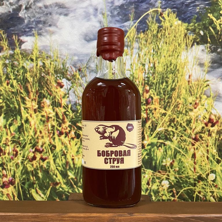 Бобровая струя – это ароматическое вещество животного происхождения, обладающее сильным мускусным запахом. Вырабатывается парными, сильноскладчатыми эпителиальными мешочками грушевидной формы с морщинистой поверхностью. Мешочки располагаются под шкурой и слоем мышц у основания хвоста как у самцов, так и у самок. Ученые доказали, что бобровая струя накапливает различные сложные компоненты и соединения из органики (бензиловый спирт, борнеол, п-этилфенол, ацетофенон, бензойную и салициловые кислоты, касторамин, смолы, ферменты, эфирные масла и т.д. более 40 компонентов), которые бобр использует в опасные для жизни моменты, возбуждая нервную систему и органы чувств. Польза бобровой струи обусловлена избирательным рационом животного. Бобры строго растительноядные, в основном предпочитают иву, осину и березу, а также различные травянистые лекарственные растения (кувшинку, кубышку, аир, крапиву и т. п., до 300 наименований). Бобровая струя представляет огромную ценность в народной, научной медицине и современной ветеринарии. Бобровую струю можно использовать, как самостоятельное средство для профилактики и восстановления организма, так и принимать параллельно с основным медикаментозным лечением.